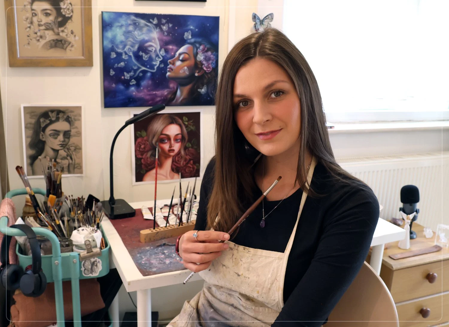Helena Artbook is a pop-surreal, fantasy, and magic realism artist from the Czech Republic, now based in London. Working primarily in oils and graphite, her art explores the realms of transformation, psychology, and spirituality, often drawing deeply from her own life experiences.